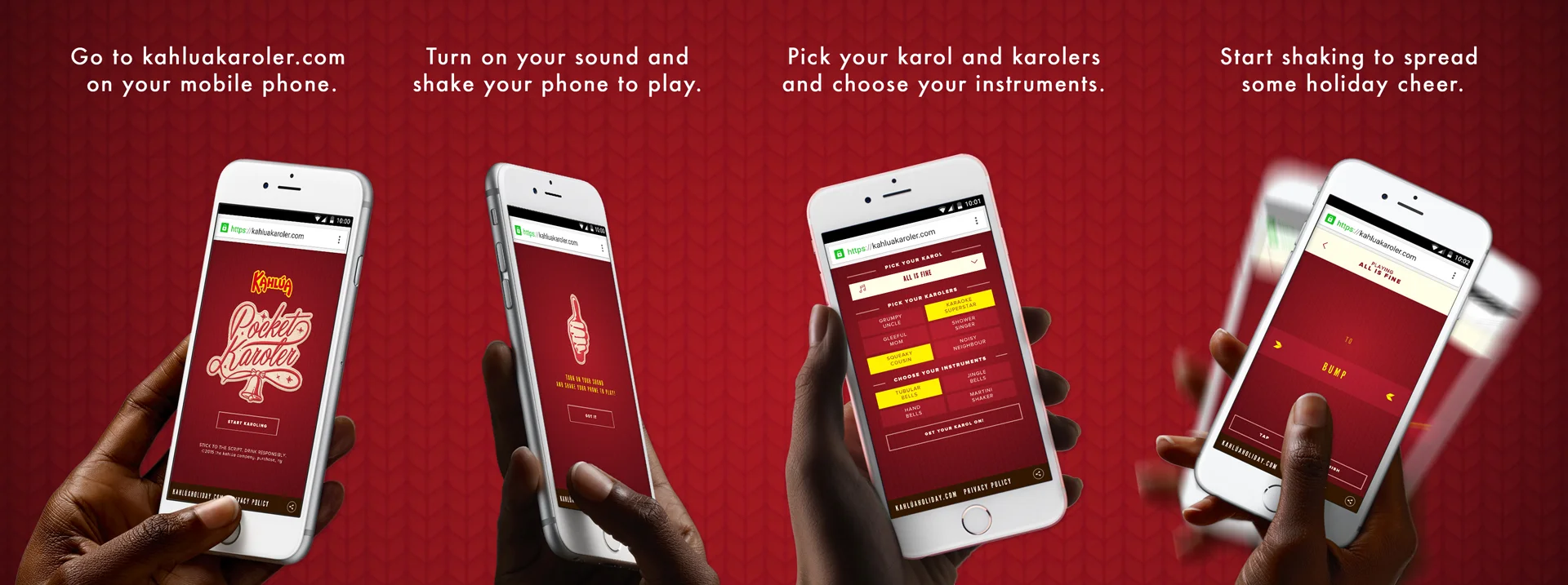 For decades, caroling has remained the same. No one thought to bring it into the 21st century… until now. For the holiday season, we upgraded caroling with the Kahlúa Pocket Karoler. It’s got a range of holiday carols that anyone can shake – and sing – along to. Sure, we changed the words a bit in our own branded twist. But the holiday cheer is there all the same. So shake up the door-to-door tradition and carol your friends all season long.